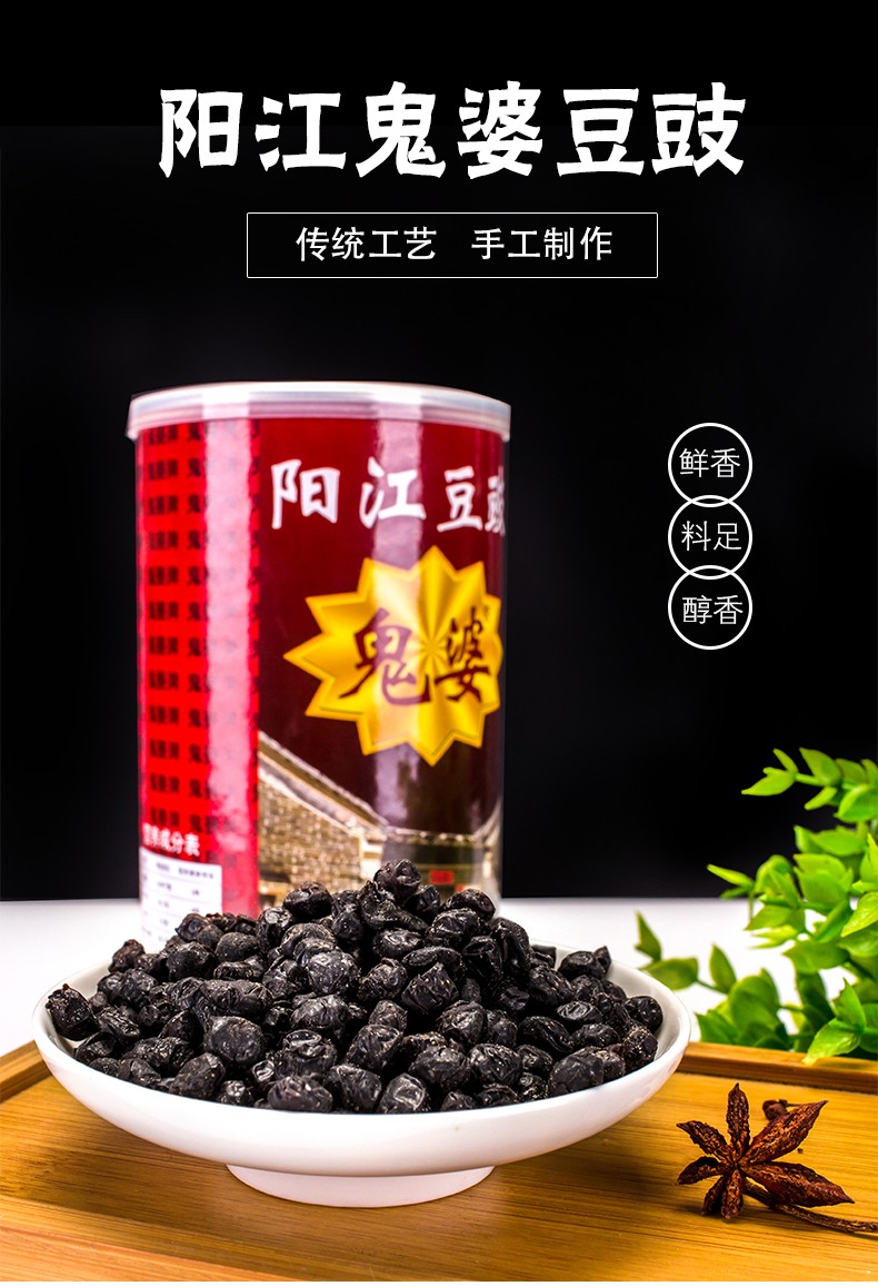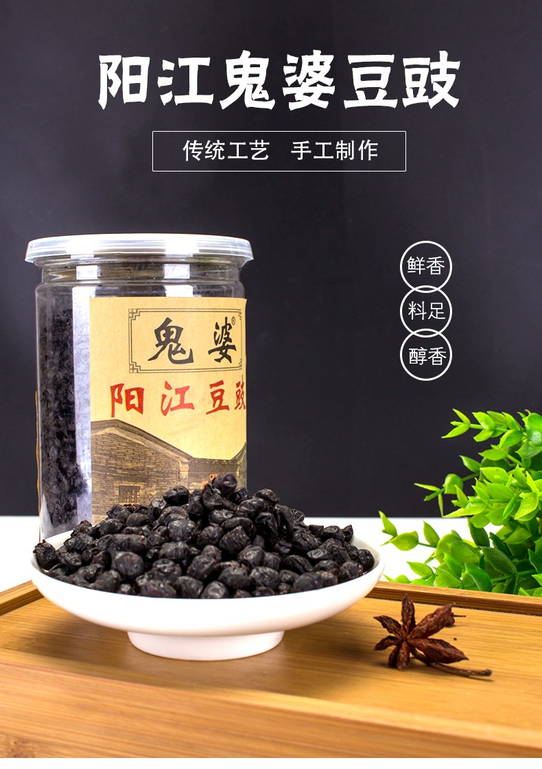 阳江市道德芯商贸有限公司是一间专业生产阳江著名土特产“阳江三宝”之一 ——豆豉的厂家,我们的鬼婆阳江豆豉系列产品,色泽乌黑油润,豉肉松化,豉味浓香,风味独特,鮮香可口,富于营养。